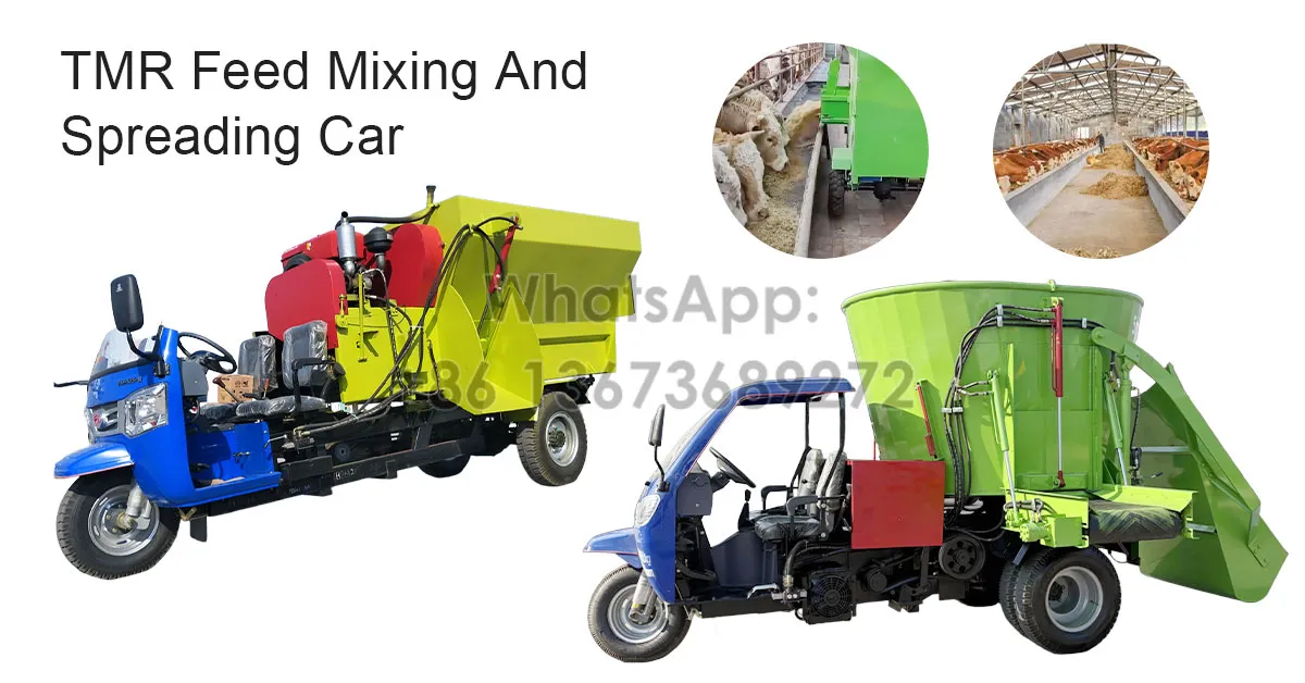 This kind of TMR feed mixing and spreading car integrates mixing and spreading functions to simultaneously complete TMR feed mixing and uniform distribution. It’s designed for medium to large-scale farms and regions with unstable power supply. The common type is 3m³, 5m³, 8m³ and more. Currently available in vertical and horizontal configurations, you can select based on feed type and farm scale.